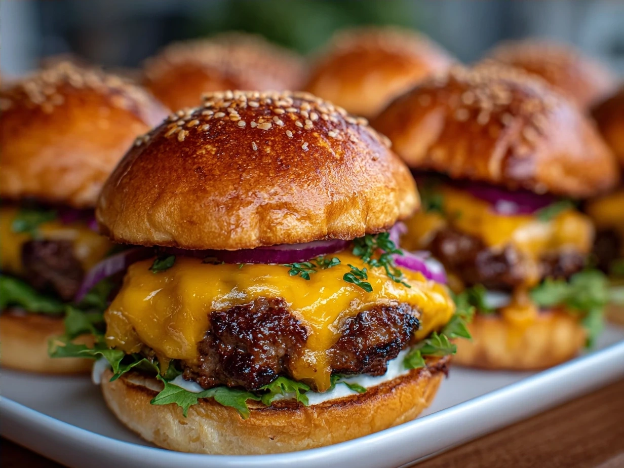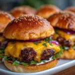 Delight in these juicy cheeseburger sliders served on sweet, soft Hawaiian rolls, perfect for parties or a tasty weeknight dinner.