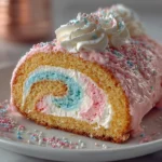 Light and fluffy, the Cotton Candy Swiss Cake Roll features a whimsical swirl of pastel sponge cake filled with a sweet vanilla cream, perfect for a playful dessert or special occasion treat.