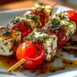 Caprese Skewers combine fresh mozzarella, ripe tomatoes, and fragrant basil leaves drizzled with balsamic glaze for a light and flavorful Italian appetizer.