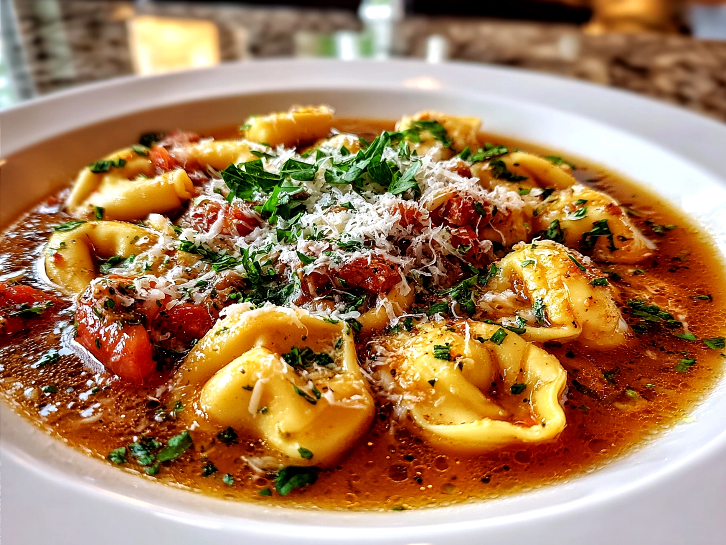 A comforting and hearty Italian-inspired tortellini soup loaded with tender cheese tortellini, savory broth, fresh vegetables, and Italian herbs — perfect for a cozy meal any day.