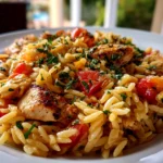 Mediterranean Chicken Orzo is a flavorful and wholesome one-pan meal combining tender chicken, tender orzo pasta, fresh vegetables, and vibrant Mediterranean herbs for a quick and satisfying dinner.