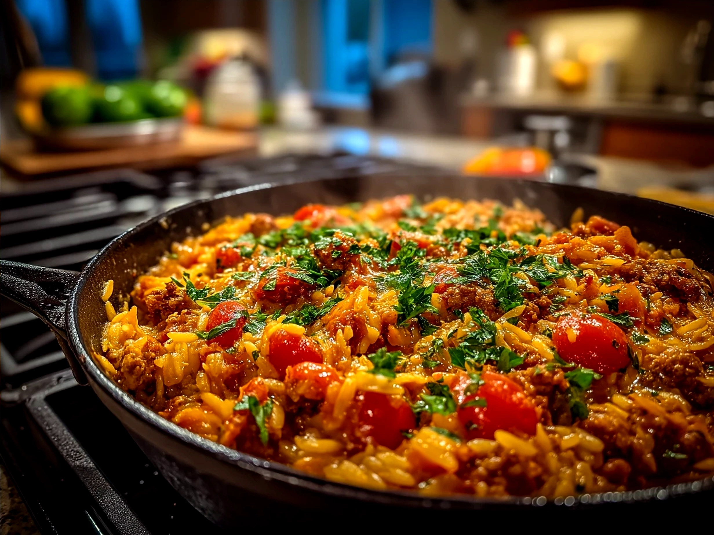 If you don’t have orzo, small pasta shapes like ditalini or tiny shells work well. Rice or quinoa can be used too, but cooking times may vary.Can I swap ground beef for ground turkey here?