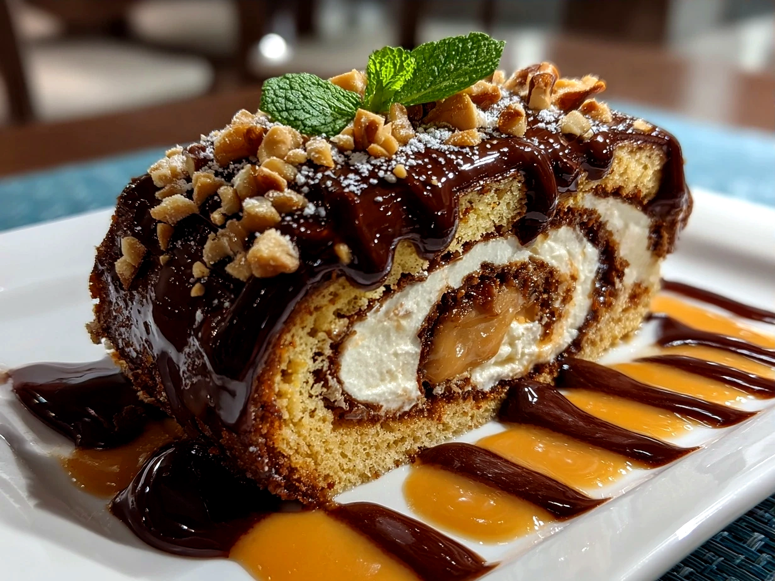 This Peanut Butter Cup Chocolate Roll combines rich chocolate sponge cake with a creamy peanut butter filling, creating a decadent dessert perfect for any occasion.
