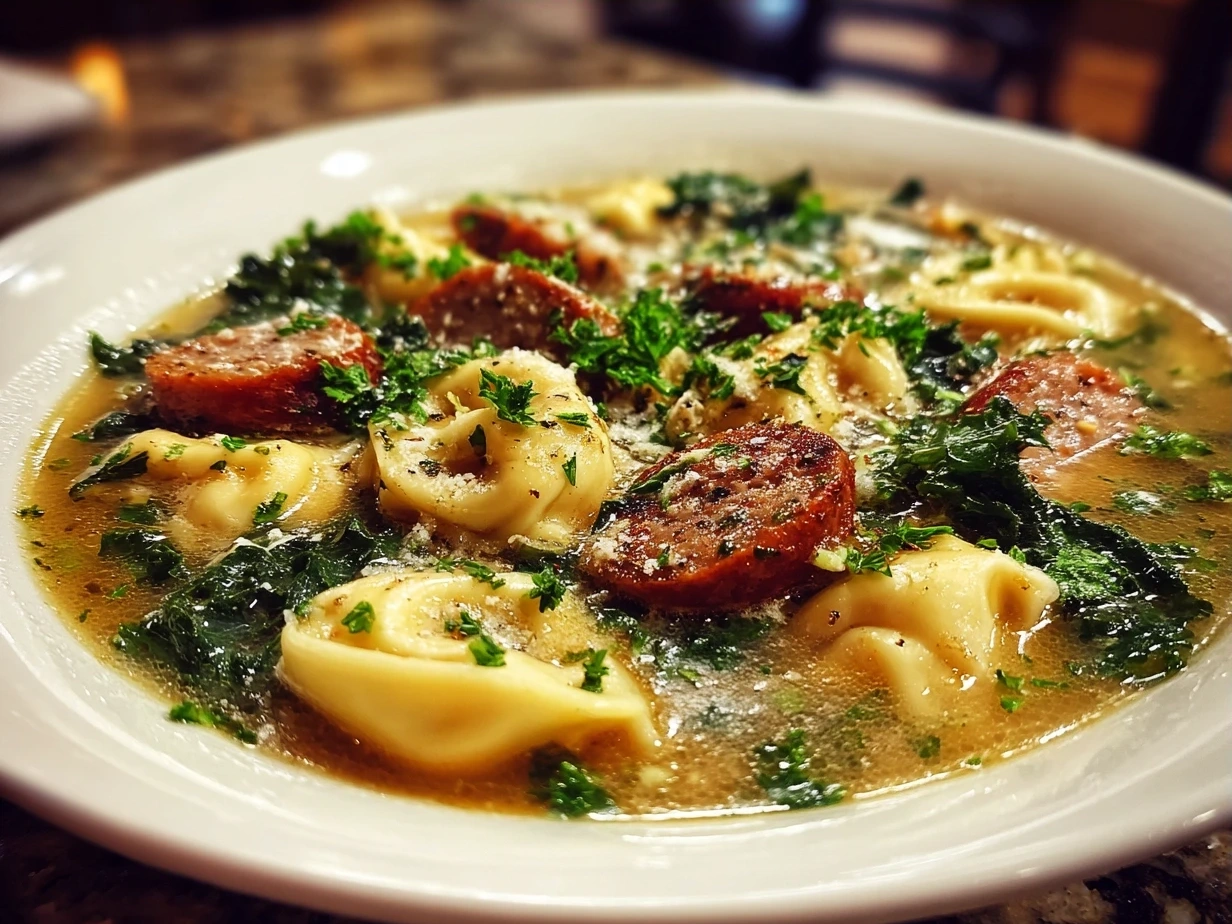 My Best Tortellini Soup with Sausage and Kale Tips: