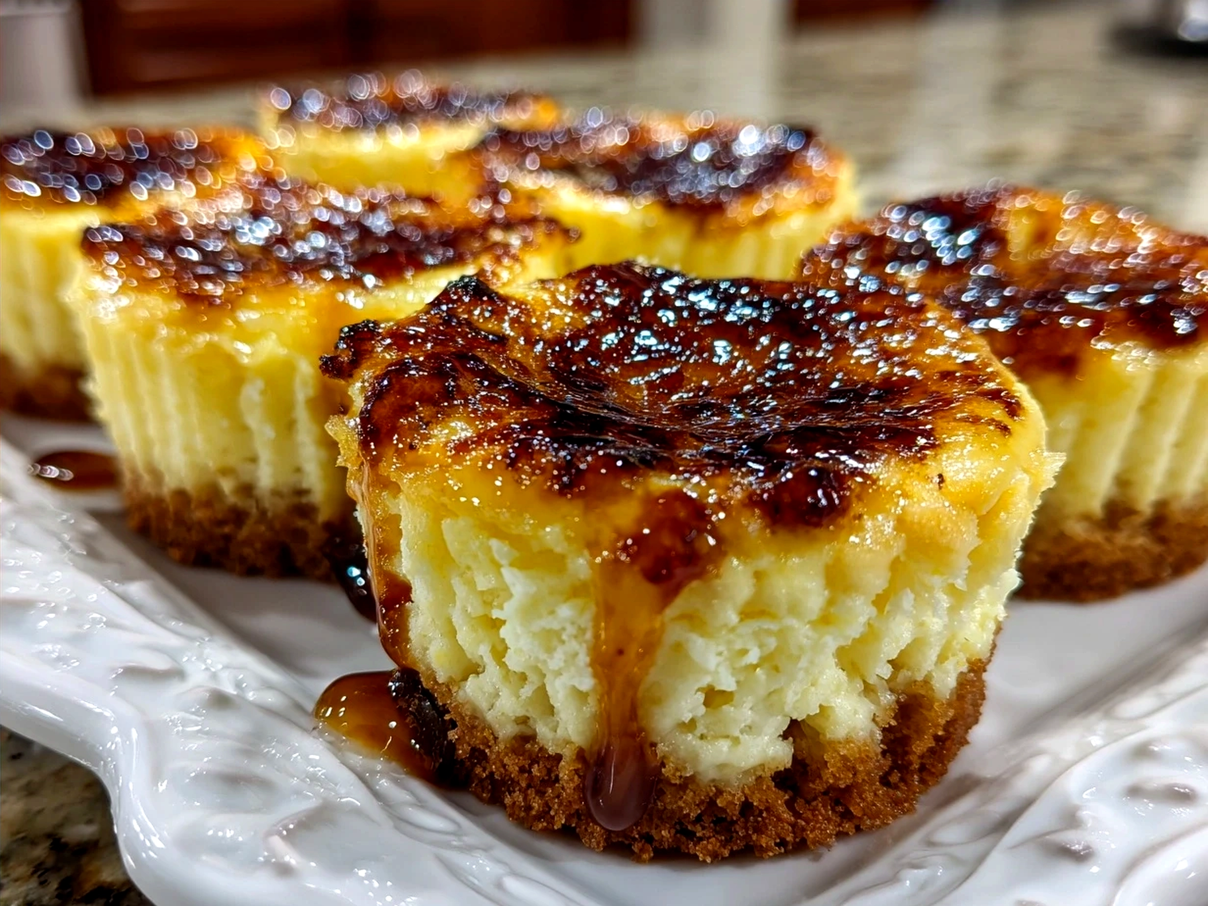 Absolutely. These mini cheesecake cupcakes actually taste better the next day after chilling in the fridge. You can prepare fully, cover, and refrigerate for up to 24 hours before adding the caramelized sugar crust on top.