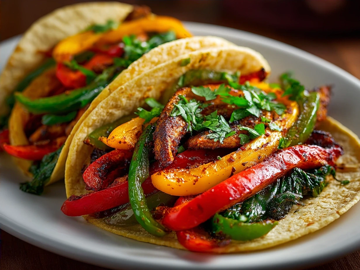 These vibrant vegan fajitas feature a flavorful mix of sautéed vegetables and smoky spices, perfect for a healthy and satisfying Mexican-inspired meal.